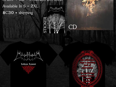 -Lethean Lament official shirt. Double-sided, red/white print on black shirt, printed on "Tultex" shirts, available in S- XXL